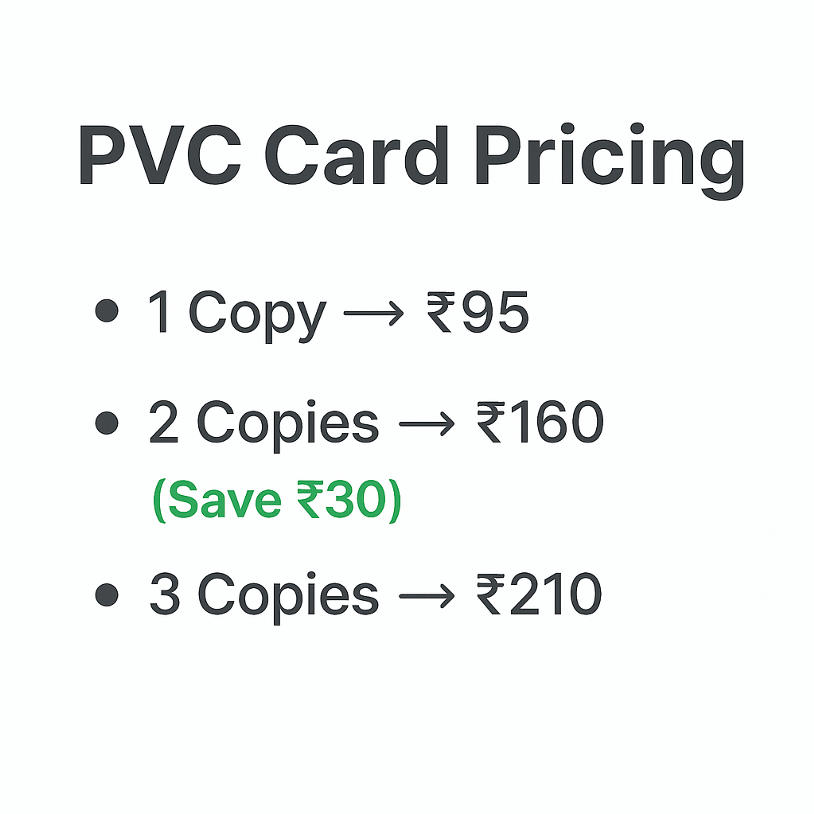 At Anikka Xerox, We provide long-lasting PVC cards that are 100% waterproof, durable, and professional. Unlike ordinary paper or laminated cards, our PVC cards are made with premium quality material that ensures they remain strong, scratch-resistant, and fade-proof even after years of use.